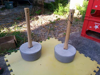 If it was me by myself, i would have probably sat and waited for them to dry, but i had a James who's smart and set up a little drying station to hold the handles where they should be while the cement set.